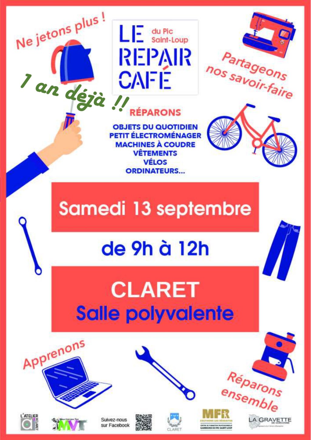 📅 Retrouvez le Repair Café du Pic St Loup chaque 2e samedi du mois, en alternance, à la salle polyvalente de Claret (1 mois sur 2).