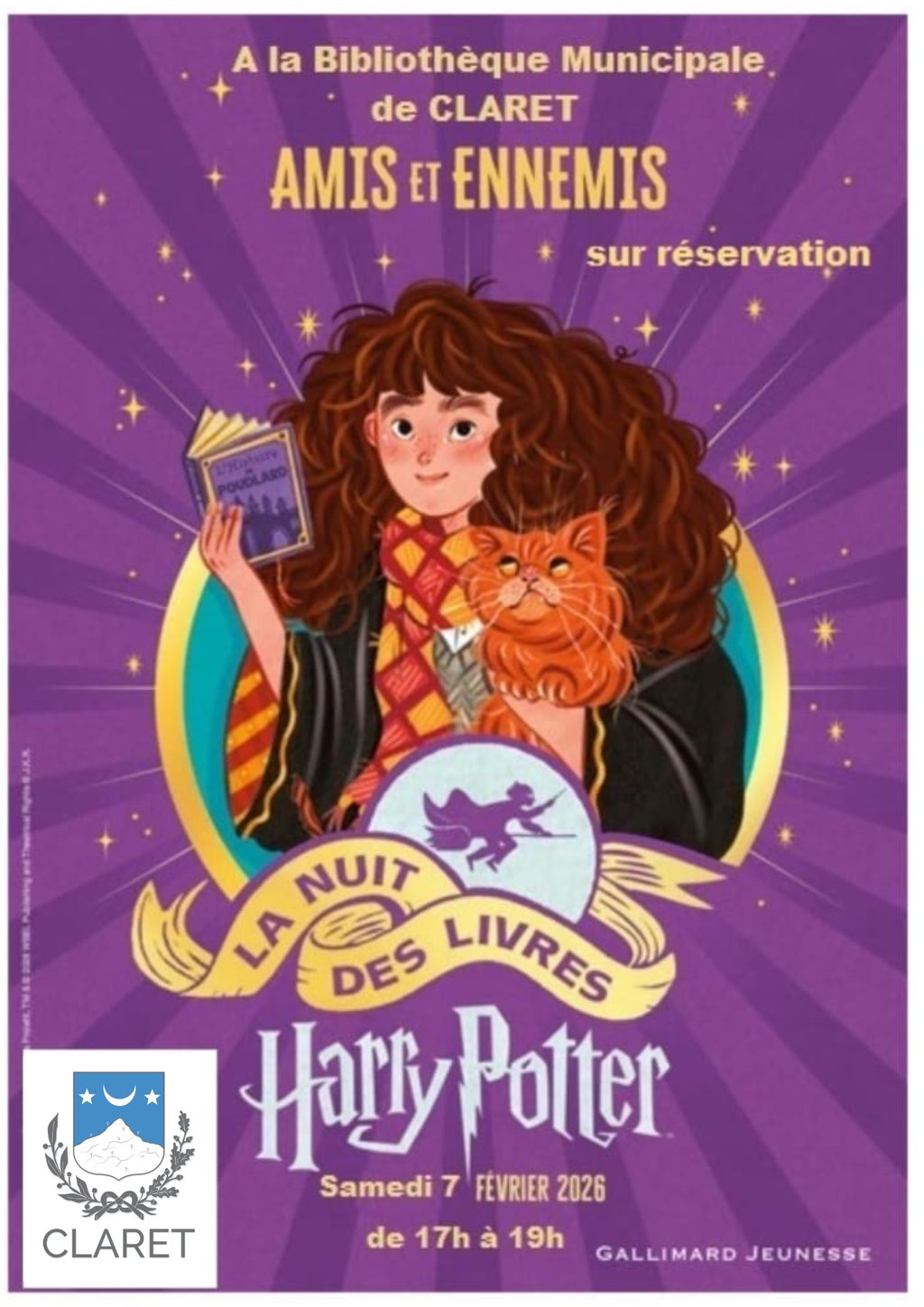 La bibliothèque de Claret vous invite à plonger dans l’univers magique de Poudlard pour une Nuit des Livres Harry Potter sur le thème « Amis et Ennemis ». Entre amitiés légendaires comme celle de Harry, Ron et Hermione, et ennemis redoutables (attention aux Mangemorts !), préparez-vous à une soirée envoûtante.