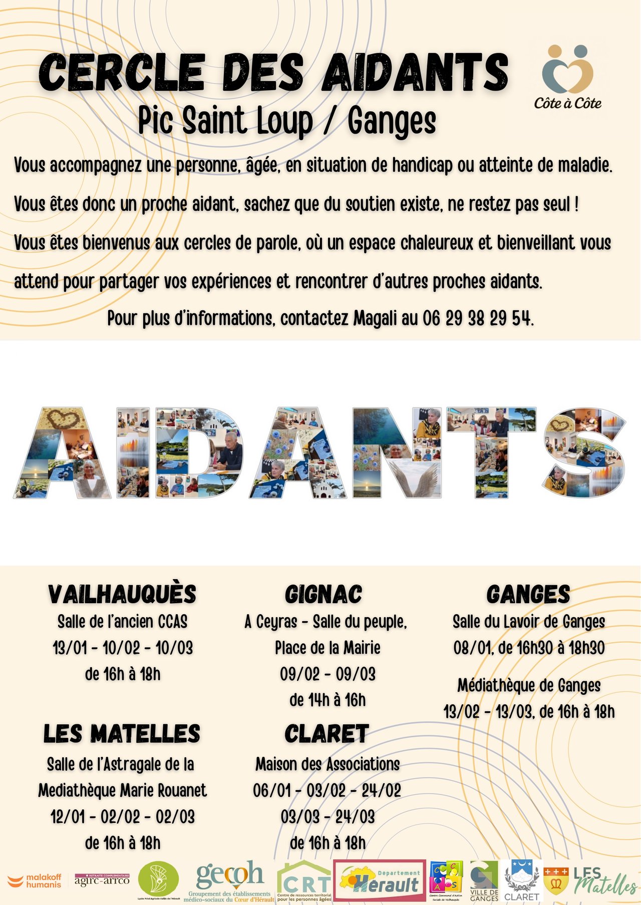 Le Cercle des Aidants vous donne rendez-vous à la Maison des Associations de Claret les mardis 3 et 24 mars de 16h à 18h.